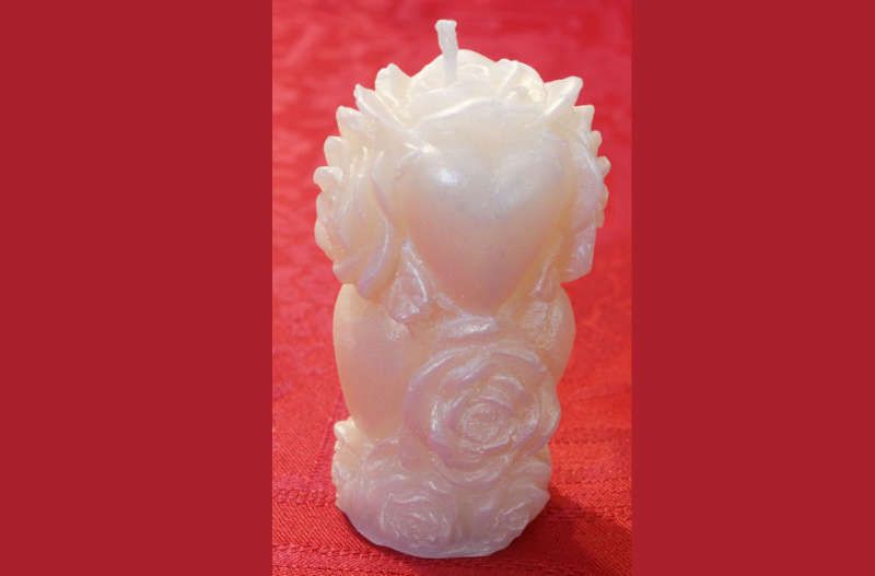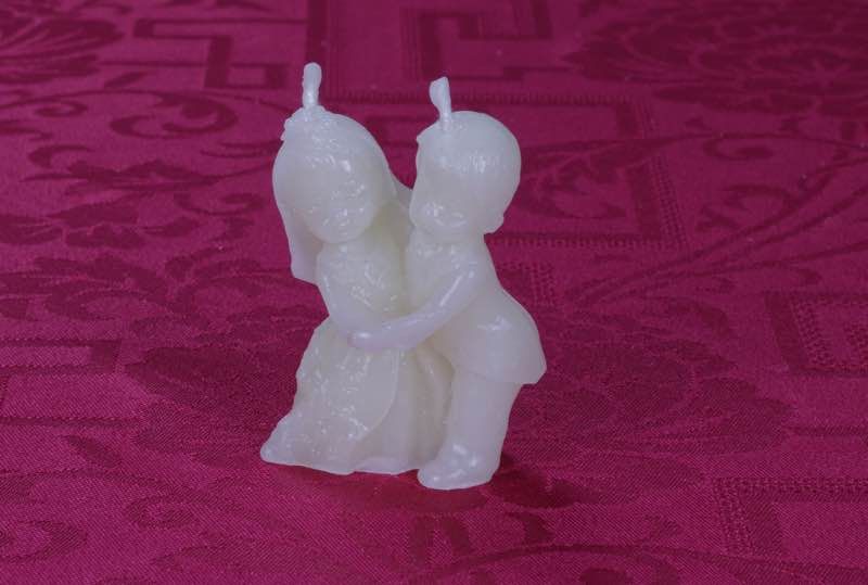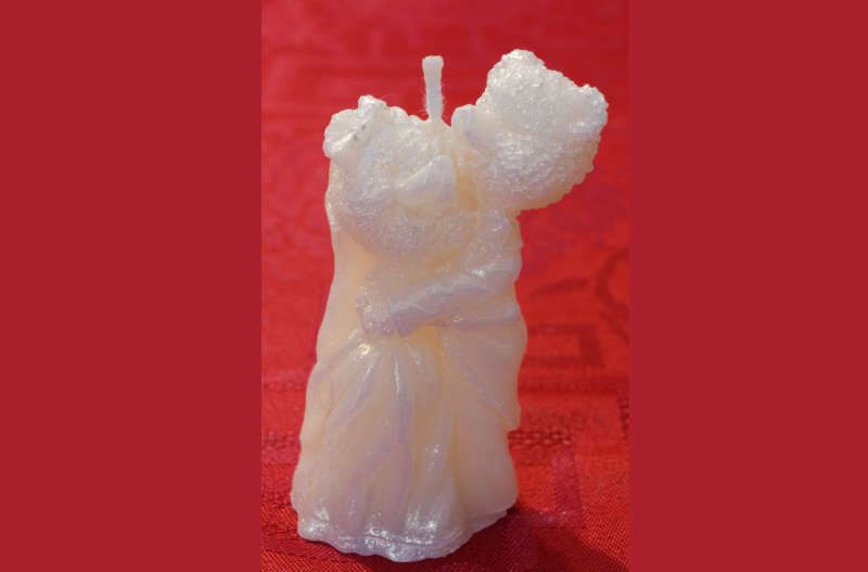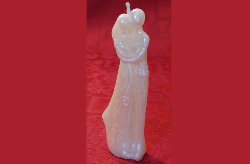 Esta bonita vela para novios puede decorar sus mesas o ser ofrecida como regalo de invitados.