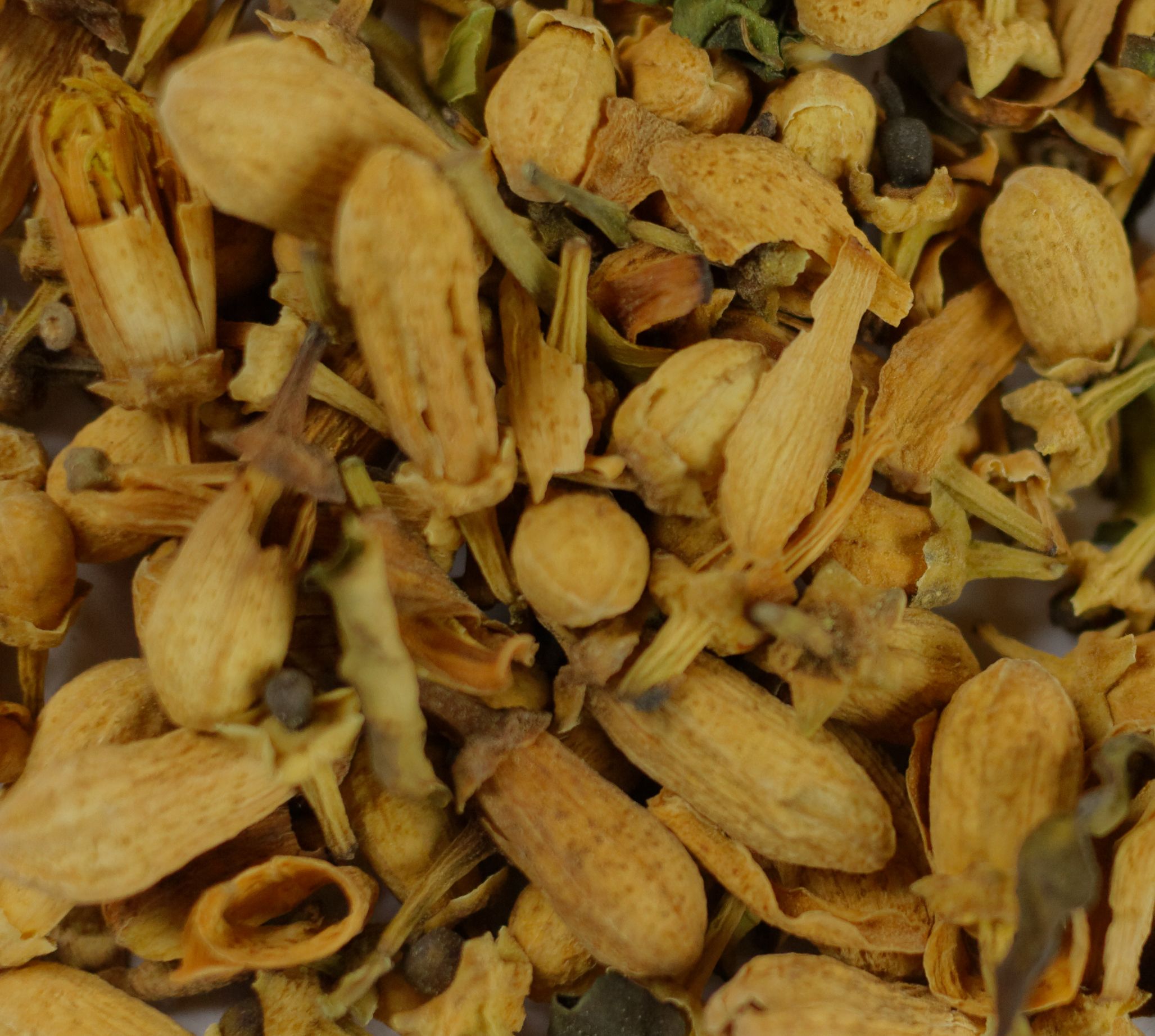 Manzanilla matricaria flor* (HR), Retama blanca sumidad florida* (FR), Malva florida*