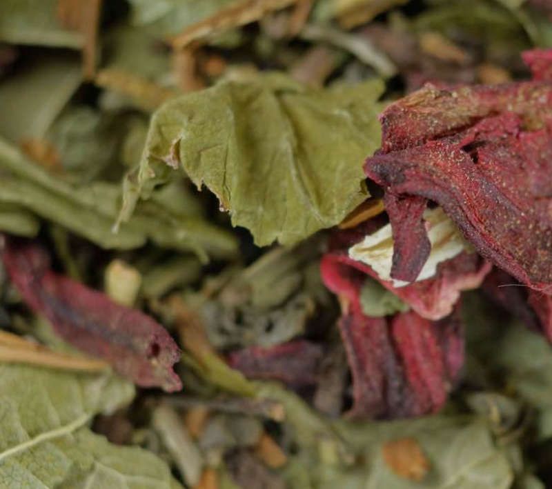 Fucus thallus* (FR), Canela * (MG), Grosella negra hoja* (FR), Té verde hoja* (CN), Hibisco flor* (EG) Diente de león hoja* (PL)