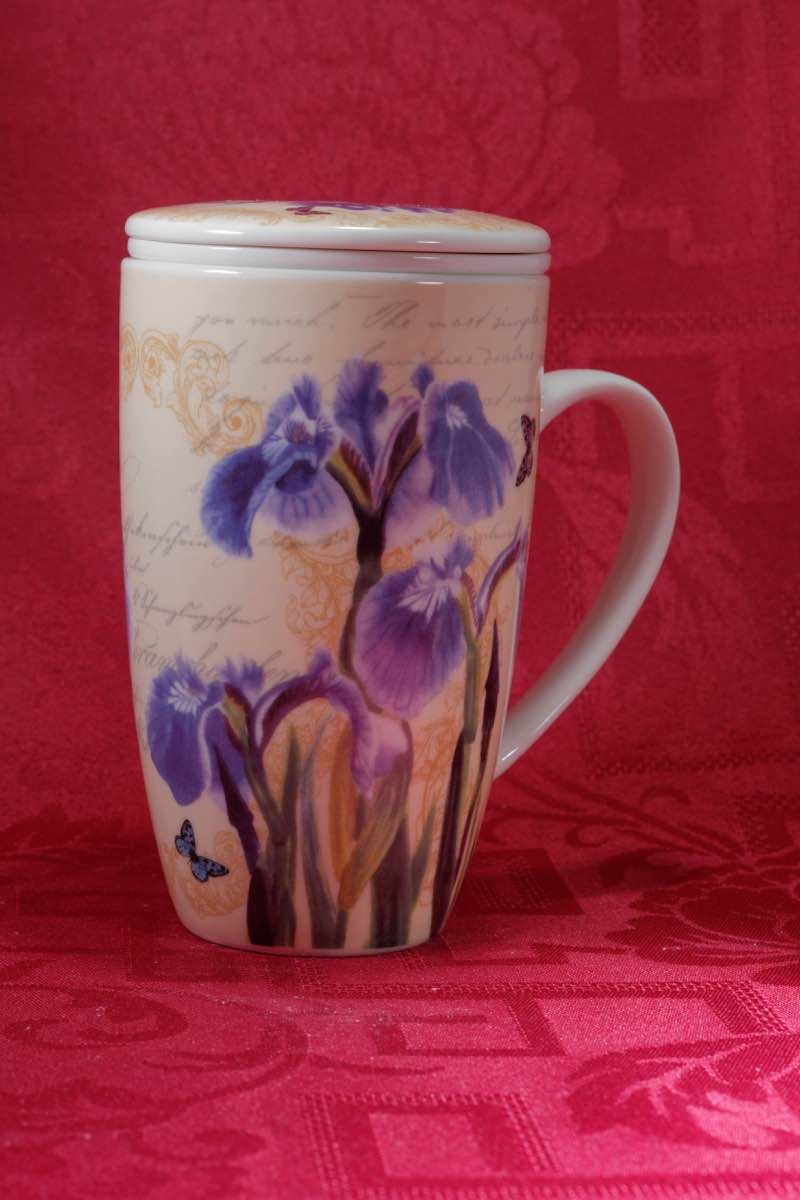 Magnífica taza de té de porcelana con motivo Iris 400 ml (Taza - filtro de porcelana - tapa) altura 14 cm x diámetro 8,2 cm
