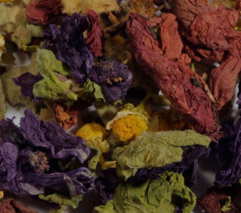 Romero *(FR), melisa* (FR), menta piperita* (FR), matricaria* (FR), violeta* (BA), mejorana* (EG), casis* (PL)
