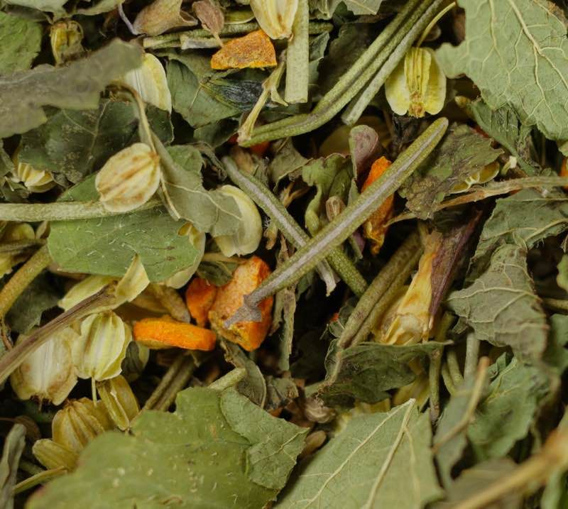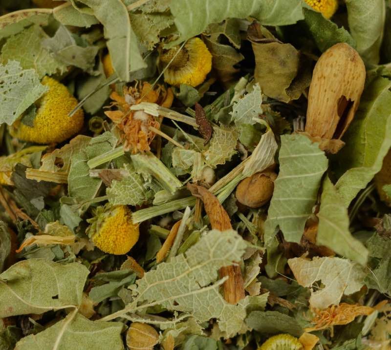 Rizoma de Quackgrass* (BG), Raíz de achicoria* (FR), Hoja de ortiga* (BG), Fruto de hinojo* (EG), Hoja de fresno* (FR), Raíz de bardana* (PL).